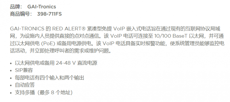 GAI-TRONICS 紧凑型免提电话398-711FS系列