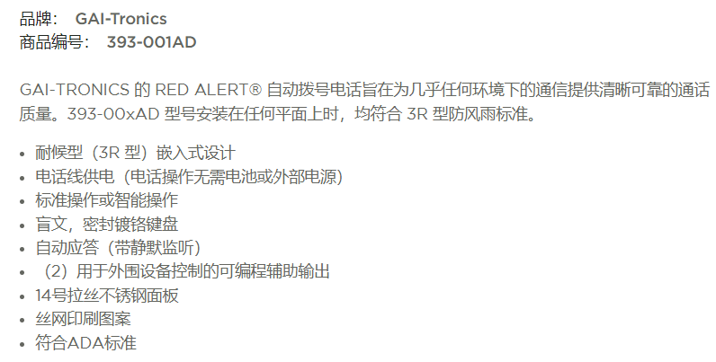 GAI-TRONICS 自动拨号免提电话393-001AD